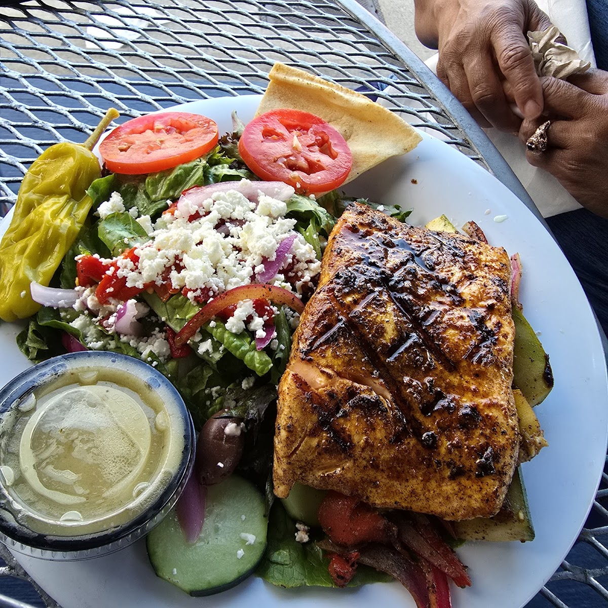 One of the standout features of Taziki’s is its focus on fresh ingredients. The café prides itself on its use of locally sourced vegetables and high-quality meats, ensuring each dish tastes as good as it looks. The salads are particularly popular, offering a refreshing mix of greens, feta, olives, and the option to add grilled chicken or lamb. If you're looking for a lighter option, their Mediterranean chicken skewers are tender and perfectly grilled, paired with a side of refreshing cucumber salad.
